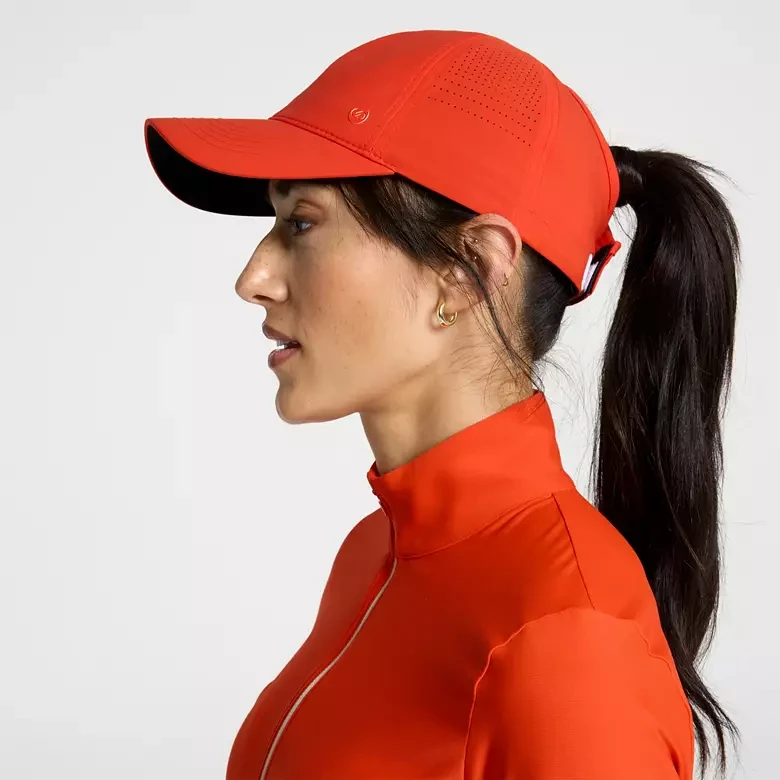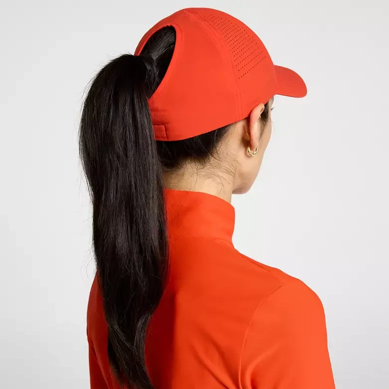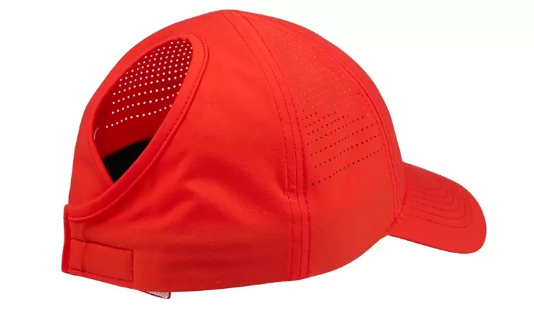 tay cool and stylish on the golf course with the CALIA Women's Golf Perforated Ponytail Hat. This hat features a patented ponytail opening, making it perfect for high ponytails or buns, and an adjustable fit for ultimate comfort. The perforated fabric ensures optimal airflow, while the curved brim adds a touch of sporty elegance to your game.