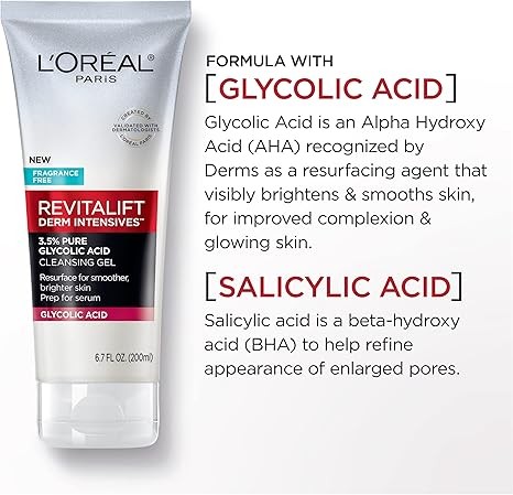 Derm Intensives 3.5 percent Pure Glycolic Acid daily cleansing gel resurfaces for smoother, brighter skin and preps for serums application - Formula with Salicylic Acid helps refine appearance of enlarged pores