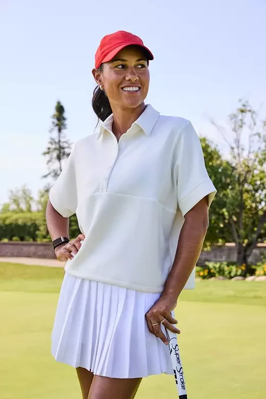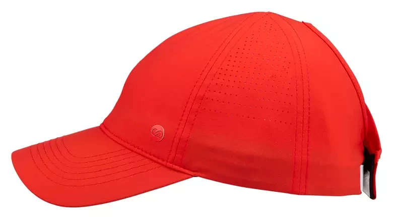 tay cool and stylish on the golf course with the CALIA Women's Golf Perforated Ponytail Hat. This hat features a patented ponytail opening, making it perfect for high ponytails or buns, and an adjustable fit for ultimate comfort. The perforated fabric ensures optimal airflow, while the curved brim adds a touch of sporty elegance to your game.