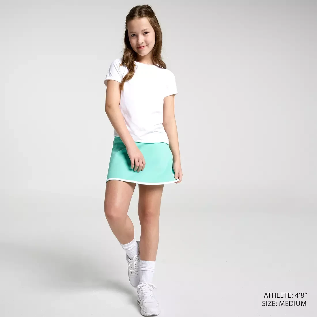 This skort is made to keep up with her high-energy lifestyle. The high rise waistband and built-in shorts provide plenty of coverage as she moves, jumps, and plays.