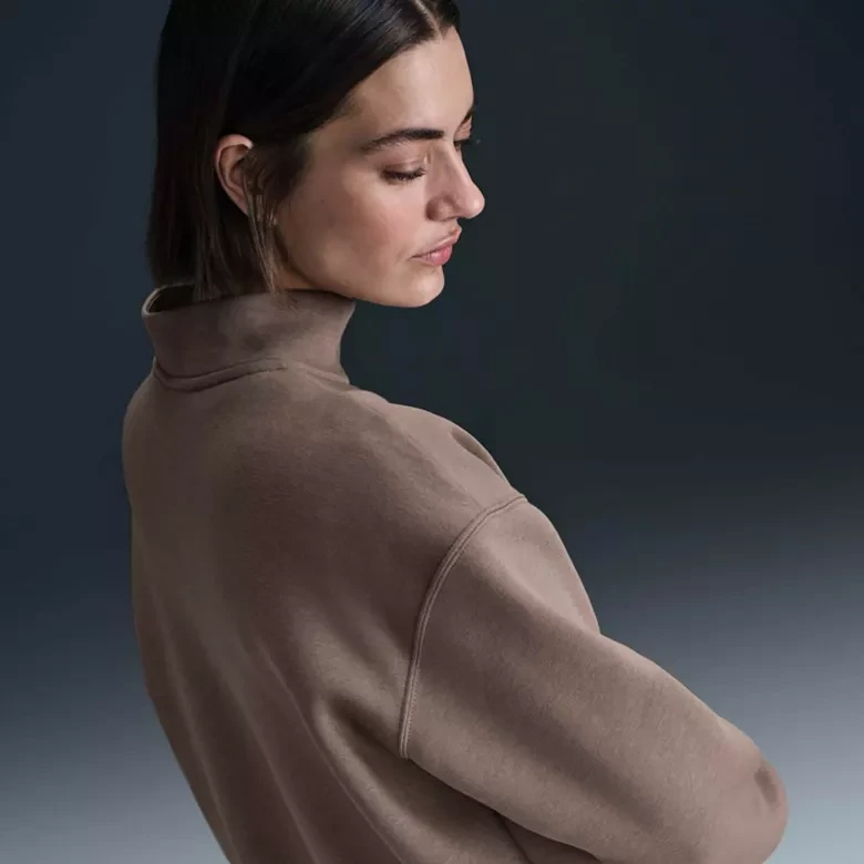This cozy fleece 1/4-zip sweatshirt feels extra soft on the inside and smooth on the outside. Dropped shoulders and extra-wide ribbing enhance the oversized, extra-long look.