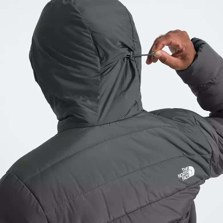 • Attached, adjustable, three-piece hood with a cinch-cord and cord lock on back